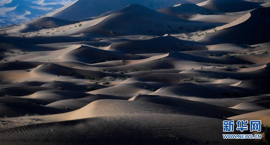 這是7月8日拍攝的騰格里沙漠風(fēng)光。位于內(nèi)蒙古自治區(qū)阿拉善左旗西南部和甘肅省中部邊境的騰格里沙漠是我國第四大沙漠,總面積約為4.3萬平方公里。夏日傍晚,騰格里沙漠連綿的沙丘被日光勾勒出美麗的線條,美不勝收。新華社記者連振攝