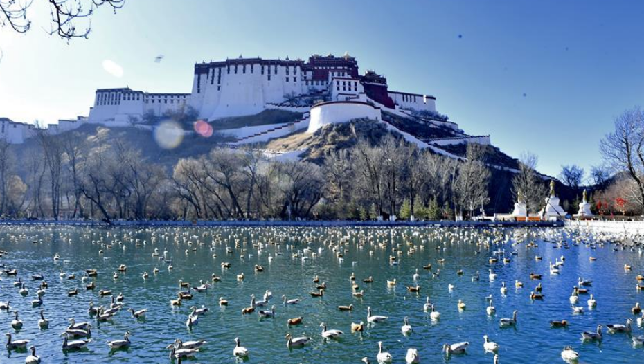 冬日,西藏拉薩市布達(dá)拉宮腳下的龍王潭公園成了鳥(niǎo)的“天堂”。數(shù)不盡的斑頭雁、赤麻鴨、紅嘴鷗在這里嬉戲、覓食。