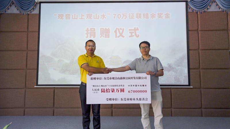 見圳客戶端·深圳新聞網(wǎng)2021年5月18日訊(記者 常軍平)“觀音山上觀山水”70萬(wàn)征聯(lián)活動(dòng)終有結(jié)果,評(píng)選出15句優(yōu)秀下聯(lián),最佳下聯(lián)空缺,并于5月17日在東莞觀音山舉行了頒獎(jiǎng)儀式及妙聯(lián)品鑒座談會(huì)?;顒?dòng)現(xiàn)場(chǎng),楹聯(lián)家們雅聚一堂,共同見證了本次征聯(lián)活動(dòng)優(yōu)秀獎(jiǎng)的頒出。以楹聯(lián)為媒,進(jìn)行交流互動(dòng)?;顒?dòng)期間,組委會(huì)代表東莞觀音山將結(jié)余款項(xiàng)67萬(wàn)元悉數(shù)捐給東莞樟木頭鎮(zhèn)慈善會(huì)。鑒于觀音山在推動(dòng)楹聯(lián)文化的傳承發(fā)展做出的突出貢獻(xiàn),被中國(guó)楹聯(lián)學(xué)會(huì)授予“中國(guó)楹聯(lián)文化名山”稱號(hào)。