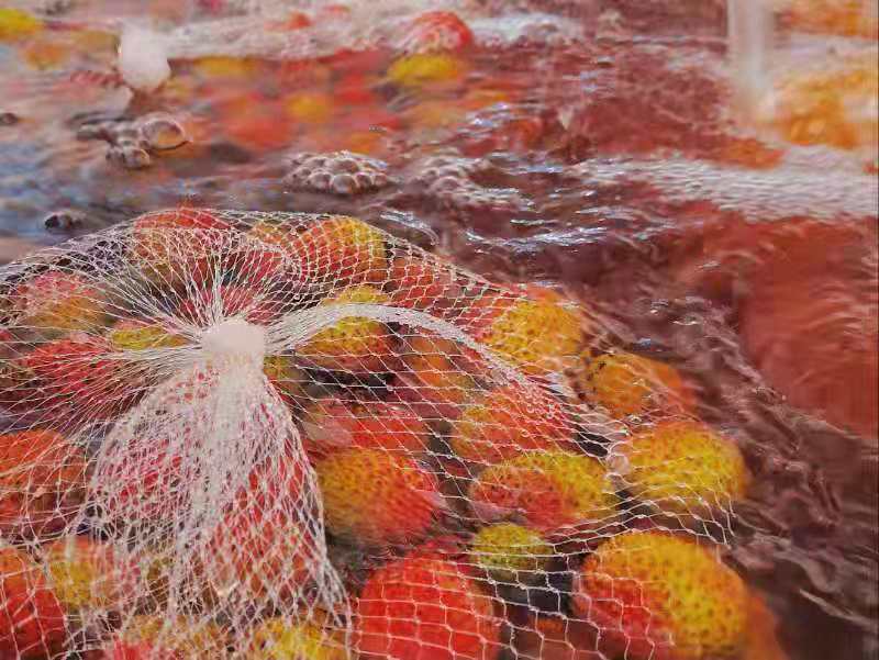 一臺(tái)約25米長(zhǎng)的機(jī)器轟隆作響,一個(gè)個(gè)飽滿圓潤(rùn)的荔枝爭(zhēng)先恐后的涌向“泳池”,在這里,荔枝寶寶們可以酣暢淋漓地泡15分鐘“冷水澡”,洗去一身的“燥熱”,然后坐上發(fā)往大倉(cāng)的“冷氣”專(zhuān)車(chē),最終經(jīng)過(guò)叮咚運(yùn)輸鏈條到達(dá)市民手中……