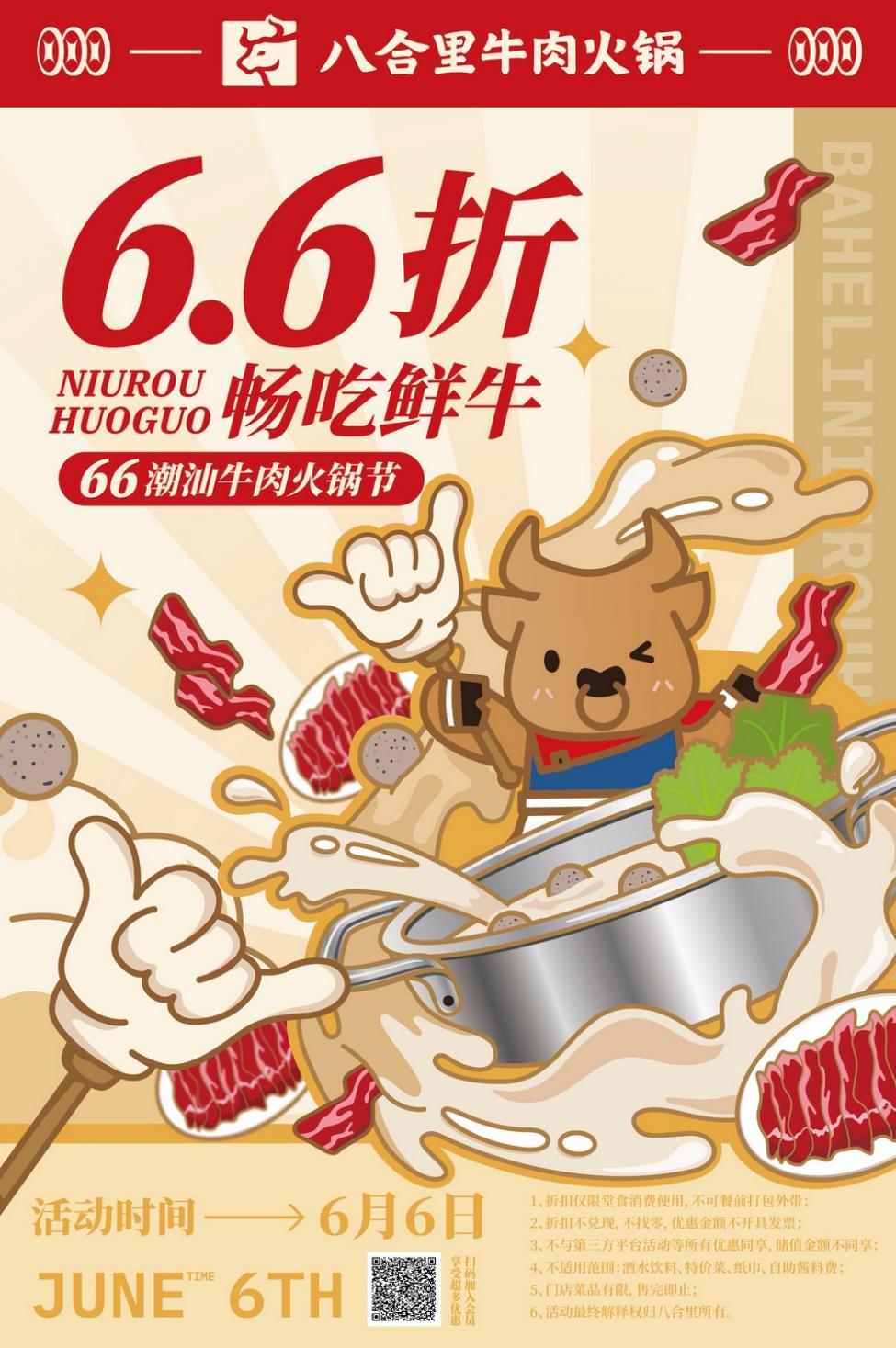 記者獲悉,近日為了回饋食客的喜愛與青睞,實(shí)力“寵”粉的八合里動(dòng)作頻頻,重磅打造粉絲首屆66潮汕牛肉火鍋節(jié)——6月6日當(dāng)天,只要到店消費(fèi),加入八合里會(huì)員并使用美團(tuán)、大眾點(diǎn)評(píng)買單,即可6.6折享受一頓鮮?;疱伌蟛?!值得一提的是,以真真切切的實(shí)惠讓利消費(fèi)者的同時(shí),八合里還攜全新的LOGO形象、品牌IP“小八”驚艷亮相,宣布品牌進(jìn)入煥新階段,傳遞年輕的態(tài)度文化與品牌初心,為消費(fèi)者帶來滿滿的誠(chéng)意和驚喜。