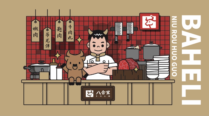 “這只神秘的牛牛小精靈,跟阿平是很好的拍檔?!薄放艻P“小八”身著廚師服裝,整體造型卡通可愛,一亮相便吸睛無數(shù)。這也是八合里首次將品牌IP從一個(gè)卡通圖形變成為一個(gè)有身份有個(gè)性的“生命體”——不僅將品牌理念滲透到整個(gè)業(yè)務(wù)鏈條中,衍生出專屬表情包文化、傳遞品牌個(gè)性主張,讓人眼前一亮記憶深刻,更是成功地進(jìn)一步融入年輕人族群,所建立的品牌認(rèn)同感就像一股無形的力量拉近了與粉絲“八粉”的距離,點(diǎn)燃品牌年輕化新勢(shì)能。