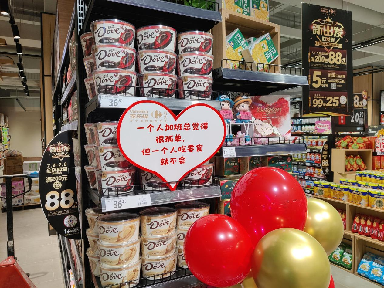 借著盛大開業(yè)的東風(fēng),家樂福社區(qū)品質(zhì)中心店推出了“優(yōu)品物語”的趣味逛店活動。該活動,在原本干巴巴的價格指示牌下面增加了諸如,“一個人吃飯很孤單,但一個人吃零食就不會”“隔壁的,你和卷心菜是什么關(guān)系?我是反內(nèi)卷菜系”“櫻桃:要我一口能讓你大紅”“藍(lán)莓:我還爆漿!能讓你大紫”等“Z世代”語言,吸引大家來發(fā)掘逛超市的趣味。不但年輕的小情侶可以在下班后默契地相視一笑,也吸引到小紅書的博主們競相探店打卡。既賦予了購物一點有趣和人性化,也給這屆年輕人動輒發(fā)圈、種草的社交型消費(fèi)加點料。