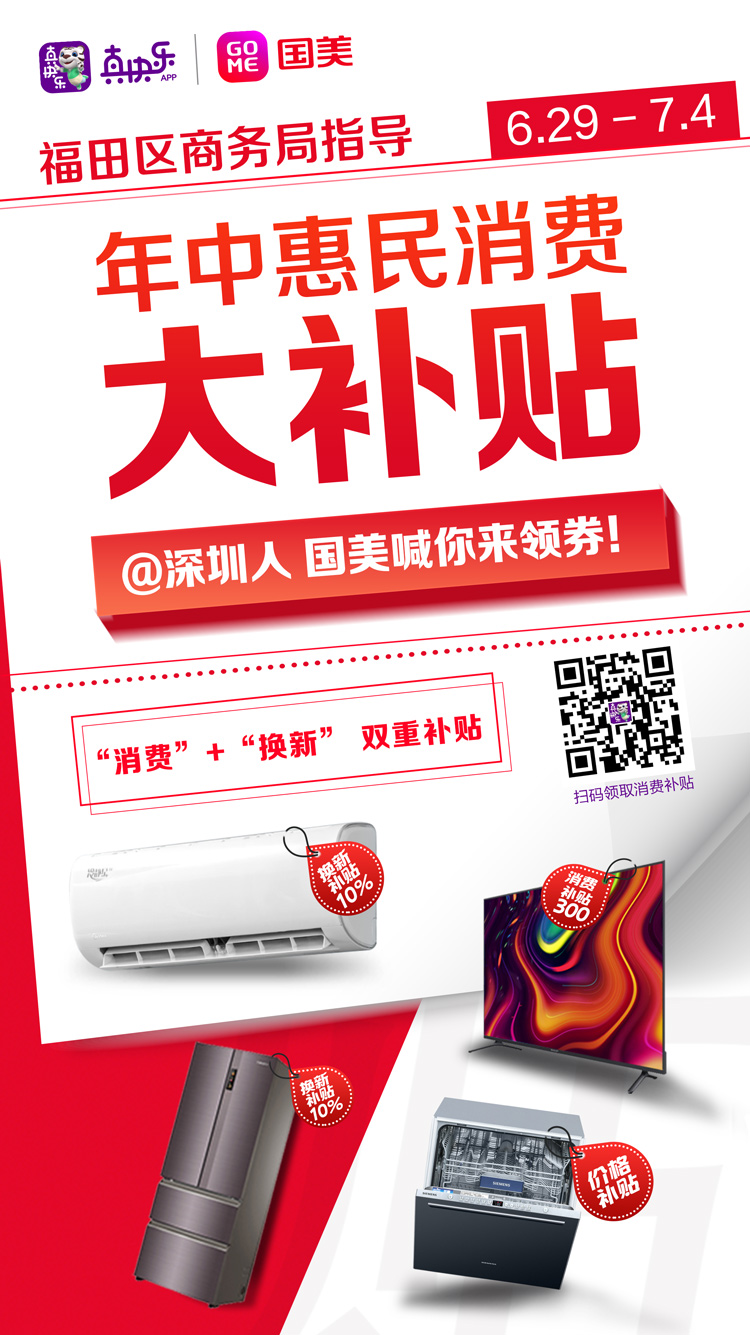 據(jù)悉,為獻(xiàn)禮建黨100周年,在深圳市福田區(qū)商務(wù)局的指導(dǎo)下,深圳國(guó)美和“真快樂(lè)”APP誠(chéng)意滿滿的推出了“年中惠民消費(fèi)大補(bǔ)貼”活動(dòng),國(guó)美這次“年中消費(fèi)大補(bǔ)貼”將從6月21日起一直延續(xù)到7月4日,4500萬(wàn)補(bǔ)貼發(fā)放,助力深圳地區(qū)消費(fèi)者升級(jí)品質(zhì)生活。而且所有活動(dòng)商品原有低價(jià)基礎(chǔ)上進(jìn)行補(bǔ)貼直降,還有超多驚喜好價(jià)等你來(lái)?yè)?,此波羊毛絕對(duì)放心薅,一起來(lái)看看吧!