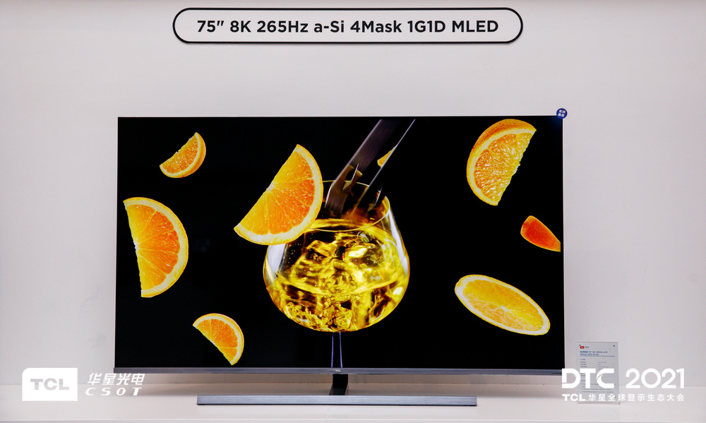 針對(duì) DTC2021五款全球首發(fā)的產(chǎn)品與技術(shù), TCL華星光電副總裁、顯示技術(shù)創(chuàng)新中心總經(jīng)理張?chǎng)巫髁嗽敿?xì)介紹。49" R8005000+Zones MLED顯示模組,65"8K噴墨打印OLED,8"無(wú)偏光極小半徑360°折疊屏,125"玻璃基透明直顯MLED,14"噴墨打印OLED卷軸屏,5款產(chǎn)品的隆重亮相瞬間成為了全場(chǎng)的焦點(diǎn),其多樣的產(chǎn)品尺寸,豐富的產(chǎn)品形態(tài),全方位地讓現(xiàn)場(chǎng)來(lái)賓及媒體,充分了解到TCL華星在屏顯技術(shù)上的研發(fā)底蘊(yùn)與創(chuàng)新實(shí)力。