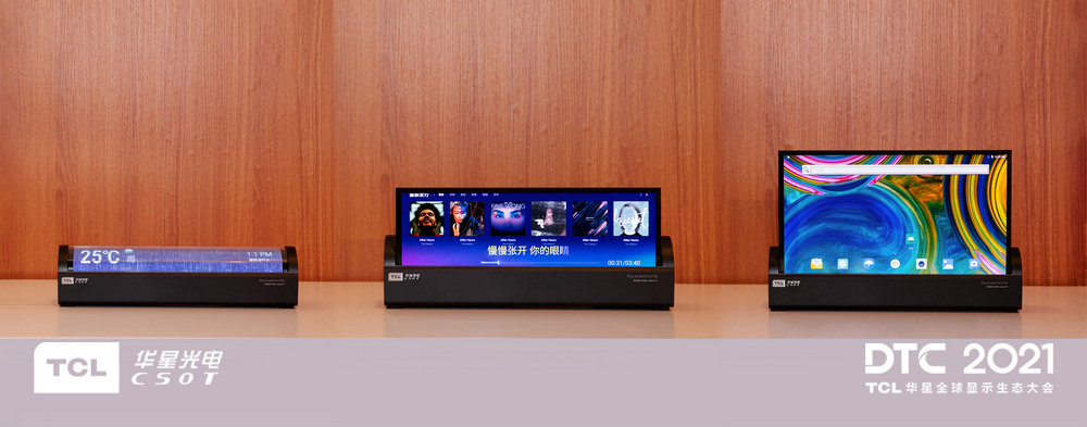 14"噴墨打印OLED卷軸屏,可以自由變換多種形態(tài),數(shù)字顯示鬧鐘、音樂(lè)播放器、顯示器,多種應(yīng)用形態(tài)無(wú)縫切換,完美融入家居場(chǎng)景中,盡顯柔性O(shè)LED顯示的魅力。它的卷曲半徑<R20mm,在高溫高濕條件下,卷曲壽命高達(dá)10萬(wàn)次,再配合自發(fā)光高精度噴墨印刷工藝制備技術(shù),以及內(nèi)置的AI補(bǔ)償算法,可以使它的畫面色彩更加明艷通透,顯示效果也得到了大幅提升。該產(chǎn)品目前由TCL華星跟日本JOLED合作推出。