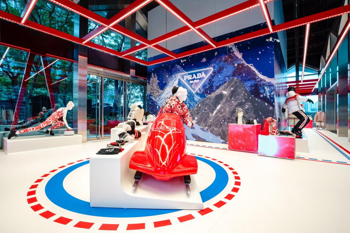 冬季運(yùn)動是充滿活力和高水平競技精神的集中體現(xiàn)。經(jīng)過Prada標(biāo)志性風(fēng)格的煥新演繹,冬季運(yùn)動為“冰上普拉達(dá)”限時(shí)店提供了靈感來源:一個(gè)展示戶外運(yùn)動熱情、充滿挑戰(zhàn)、崇尚團(tuán)隊(duì)協(xié)作、體現(xiàn)高速魅力的個(gè)性原創(chuàng)空間。