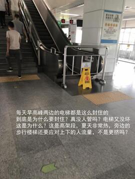 在7月2日的這條投訴中,有市民還指出了電梯停運時間的不合理,稱木棉灣站的地鐵每逢工作日高峰期就“暫停使用”,到了平峰期就正常運行。這也引起了其他一些乘客的質(zhì)疑。家住木棉灣站附近的李先生說:“非高峰時段電梯就能用,說明電梯本身沒問題,那為什么不開放給人多的時候用呢?”市民張先生則認(rèn)為,地鐵方面可能是為了降低維護成本,“怕人多踩壞了,要花錢花時間修唄”。但也有市民猜測電梯停運或有安全方面的考慮?!爱吘共粫o緣無故就停了吧,可能是考慮到高峰客流量多,所以關(guān)掉不用的。”杜女士表示,可以接受因為安全問題而采取的停運措施,“走走樓梯也沒有什么。