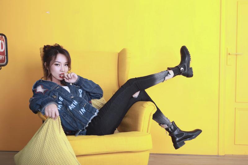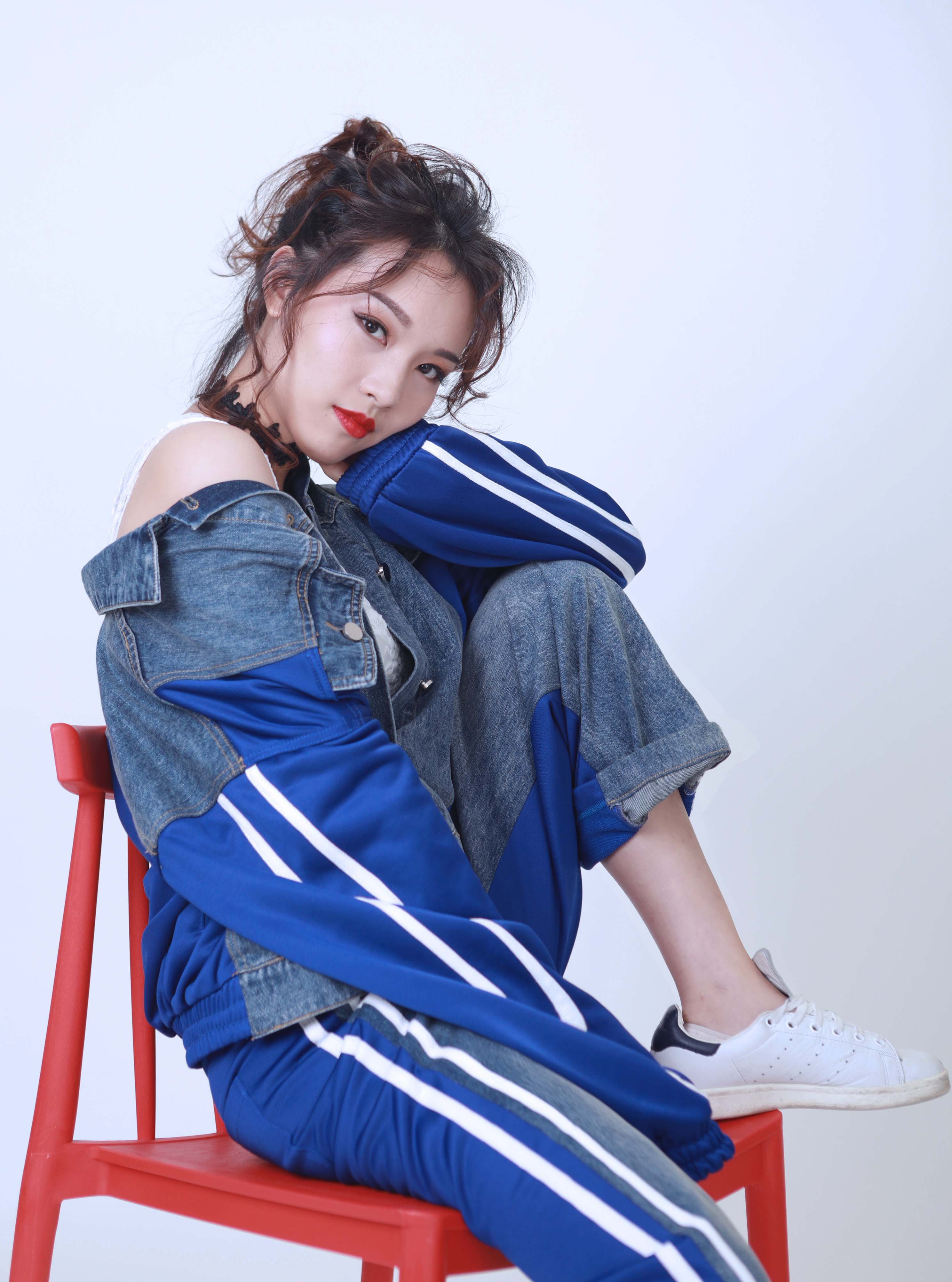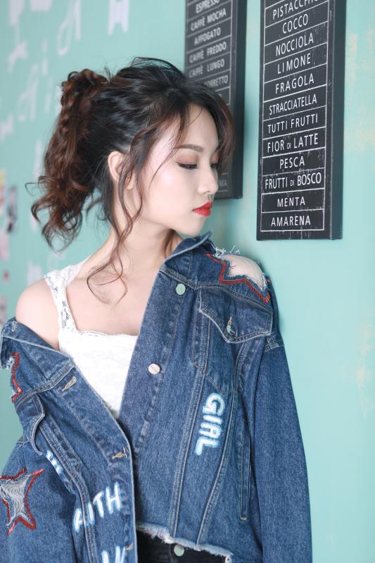 改造后的芷苑小姐姐大走街頭風,一頭卷發(fā)胡亂綁成高馬尾,搭配星星破洞oversized牛仔外套&漸變牛仔skinny,碰撞上大紅唇色,一改之前的乖巧模樣。