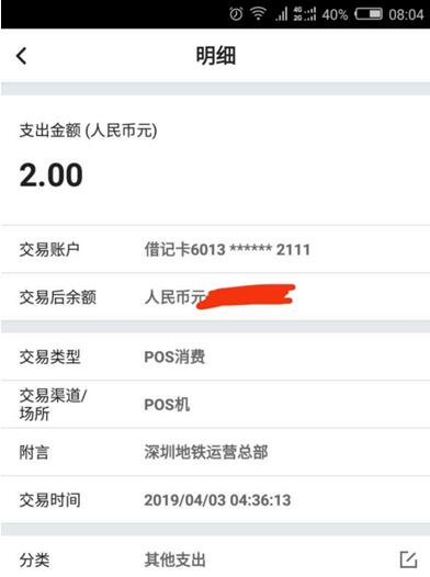 銀行卡半夜被地鐵刷POS機?回應:應是延時扣費