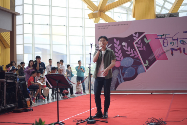 畢業(yè)于深圳大學(xué)金鐘音樂學(xué)院的主唱周鈺城帶來兩首尤克里里樂隊(duì)歌曲, Jason Mraz 的經(jīng)典曲目《 I’ m Yours 》和英國當(dāng)紅歌星 E d sheeran 的 《 Thinking out Loud 》,周鈺城富有磁性的嗓音,在深圳夏威夷小吉他協(xié)會理事謝佳宜的尤克里里琴聲以及同樣畢業(yè)于深圳大學(xué)金鐘音樂學(xué)院的鼓手黃曉輝的鼓聲伴奏中,美妙的融合在一起。