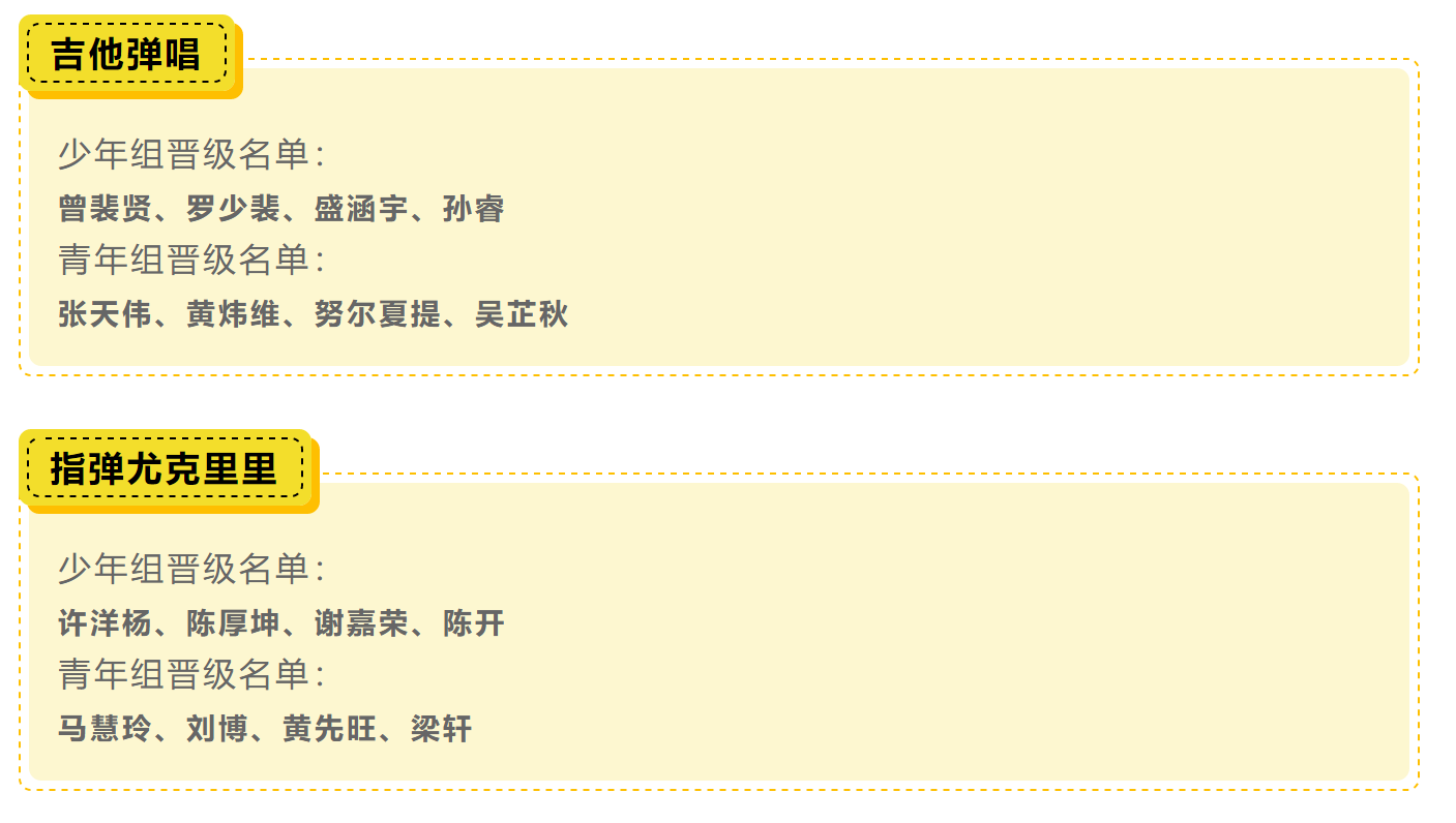 首屆“前海吉他&尤克里里大賽”,在短短一個月內(nèi)收到了全國各地愛好者的踴躍報名!經(jīng)過了專業(yè)評委們對初選綜合評分,最終在激烈的角逐下,組委會篩選出八個組別共34位選手入圍決賽!