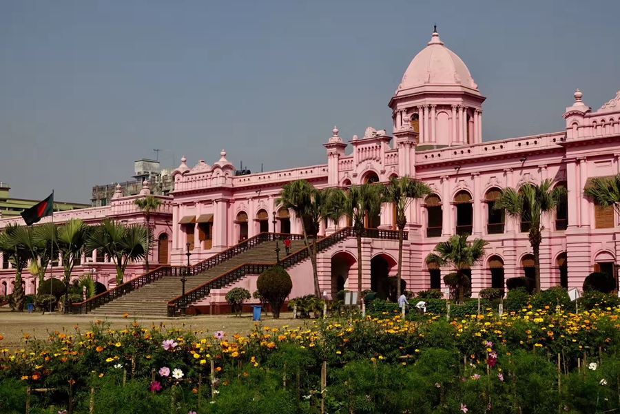 距孟加拉恒河渡口不遠(yuǎn)的地方有一座粉紅色宮殿式的豪華建筑。那是1872年一位名叫阿赫桑曼濟(jì)勒的地主在法國(guó)人留下的倉房基礎(chǔ)上改建的私邸,后來曾在一次龍卷風(fēng)襲擊時(shí)受創(chuàng)。李仁奇 攝