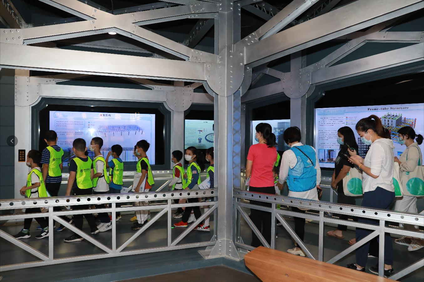 序廳、歷史廳、科技廳、互動(dòng)廳、未來廳,每一個(gè)展廳都給大家?guī)聿灰粯拥捏w驗(yàn)。大小朋友們在老師的帶領(lǐng)下了解世界鋼結(jié)構(gòu)的發(fā)展歷程、探尋中國鋼結(jié)構(gòu)的崛起之路、感受鋼結(jié)構(gòu)文明的氣韻、展望鋼結(jié)構(gòu)的未來。