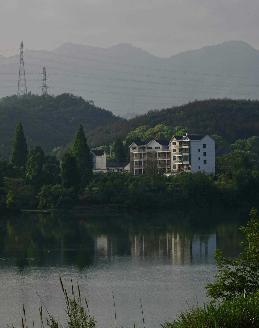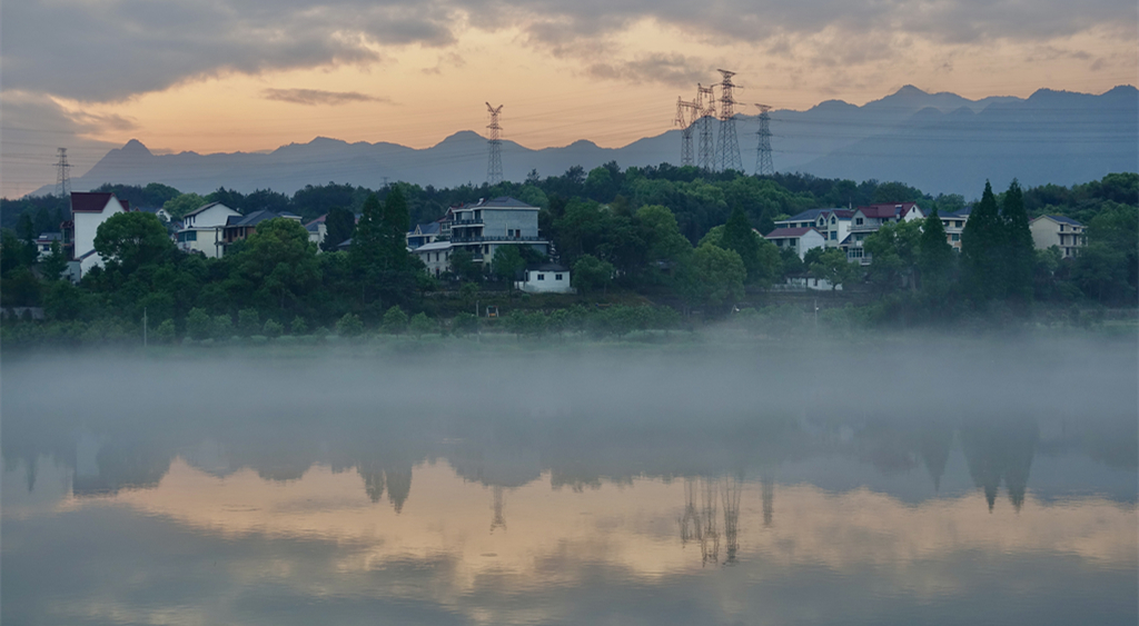 煙霧繚繞,江邊的庭院若隱若現(xiàn)。李仁奇 攝
