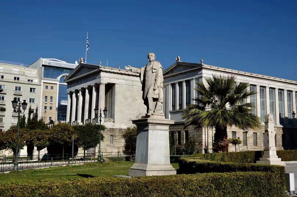 位于科學(xué)院和圖書館之間的是雅典大學(xué),它是希臘最古老和最具影響力的大學(xué)。李仁奇 攝