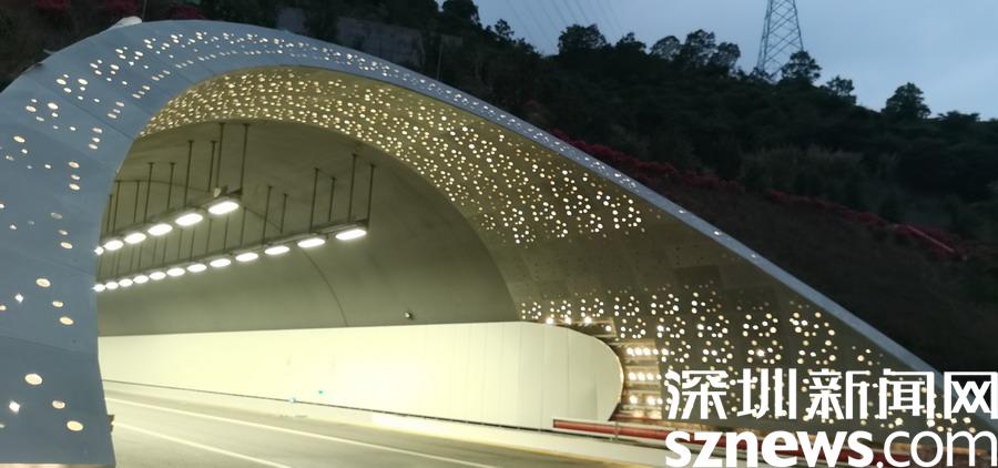 到達隧道的中段部分,映入記者眼簾的是一道道彩色的燈帶,這些燈帶可以根據(jù)環(huán)境光變換成七種不同的顏色,可謂科技感十足。在即將駛出隧道口200米處,我們能看采用彩色絲印搪瓷鋼板呈現(xiàn)的坪山地貌風光、鹽田山海風光,這意味著,我們穿過了馬巒山的山體,一下子從坪山來到了鹽田區(qū)范圍內(nèi)的惠深沿海高速,這趟坪山到鹽田的隧道之旅僅僅不到10分鐘就要結(jié)束了。
