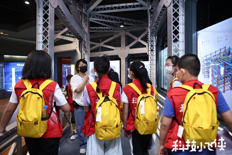 在展館內(nèi),小飛俠們在兩位老師的帶領下接受研學任務,并跟隨兩位老師先后對鋼結構歷史、鋼結構科技、鋼結構設計、鋼結構制造等版塊進行學習,進一步認識鋼結構建筑的歷史發(fā)展,學習鋼結構科技的相關知識,認識建筑結構與環(huán)境之間的關系,加深對鋼結構領域相關知識的學習及研究。