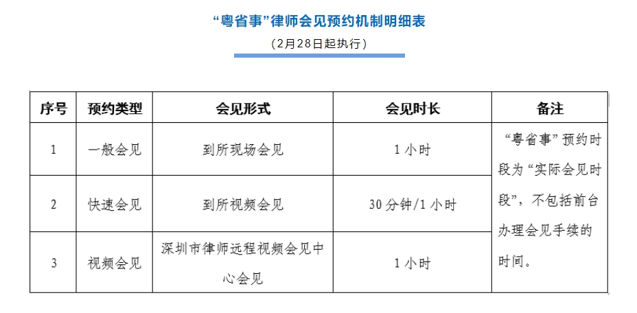 需要提醒律師的是,預(yù)約2月28日以后會(huì)見(jiàn)號(hào)時(shí),注意上述變化,確保律師會(huì)見(jiàn)預(yù)約工作順暢。