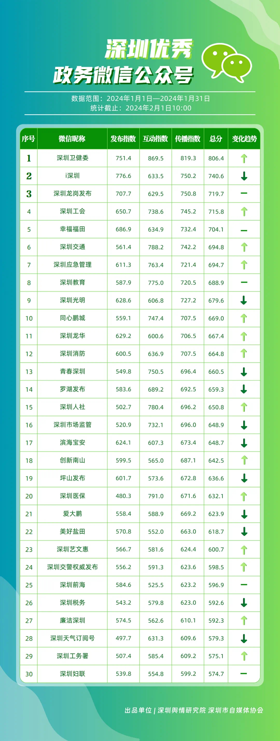 深圳新聞網(wǎng)2月9日訊(記者 陳曉君 實(shí)習(xí)生 張馳)2月8日,深圳輿情研究院、深圳市自媒體協(xié)會聯(lián)合推出《深圳優(yōu)秀政務(wù)新媒體矩陣》(2024年1月期),市衛(wèi)生健康委、市氣象局、福田區(qū)、光明區(qū)、龍崗區(qū)、龍華區(qū)、市公安局、市應(yīng)急管理局、市交通警察局、羅湖區(qū)的新媒體矩陣獲評“深圳優(yōu)秀政務(wù)新媒體矩陣”。這些矩陣在內(nèi)容發(fā)布、受眾互動和信息傳播方面取得了較好成績,并在深圳政務(wù)新媒體規(guī)范有序發(fā)展進(jìn)程中發(fā)揮著積極作用。