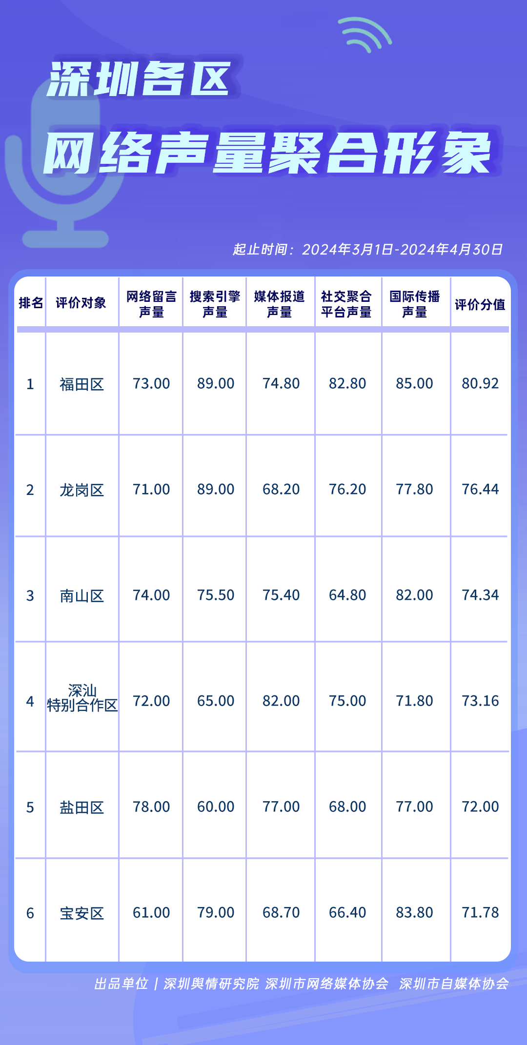 為全面評(píng)估深圳各區(qū)各單位網(wǎng)絡(luò)形象建設(shè)情況,助力各區(qū)各單位持續(xù)響應(yīng)居民對(duì)美好生活的期許,賦能城市高質(zhì)量發(fā)展,深圳輿情研究院、深圳市網(wǎng)絡(luò)媒體協(xié)會(huì)、深圳市自媒體協(xié)會(huì)聯(lián)合推出“深圳各區(qū)各單位網(wǎng)絡(luò)形象建設(shè)榜”,從網(wǎng)絡(luò)聚合聲量、留言互動(dòng)成效、社會(huì)生活評(píng)價(jià)、輿情管理能力及新媒體傳播水平等方面,多維度分析深圳各區(qū)(含大鵬新區(qū)、深汕特別合作區(qū))、各市直單位(市直屬單位、直屬部門)的網(wǎng)絡(luò)形象建設(shè)成果,凸顯各區(qū)各單位的“共性”與“個(gè)性”。