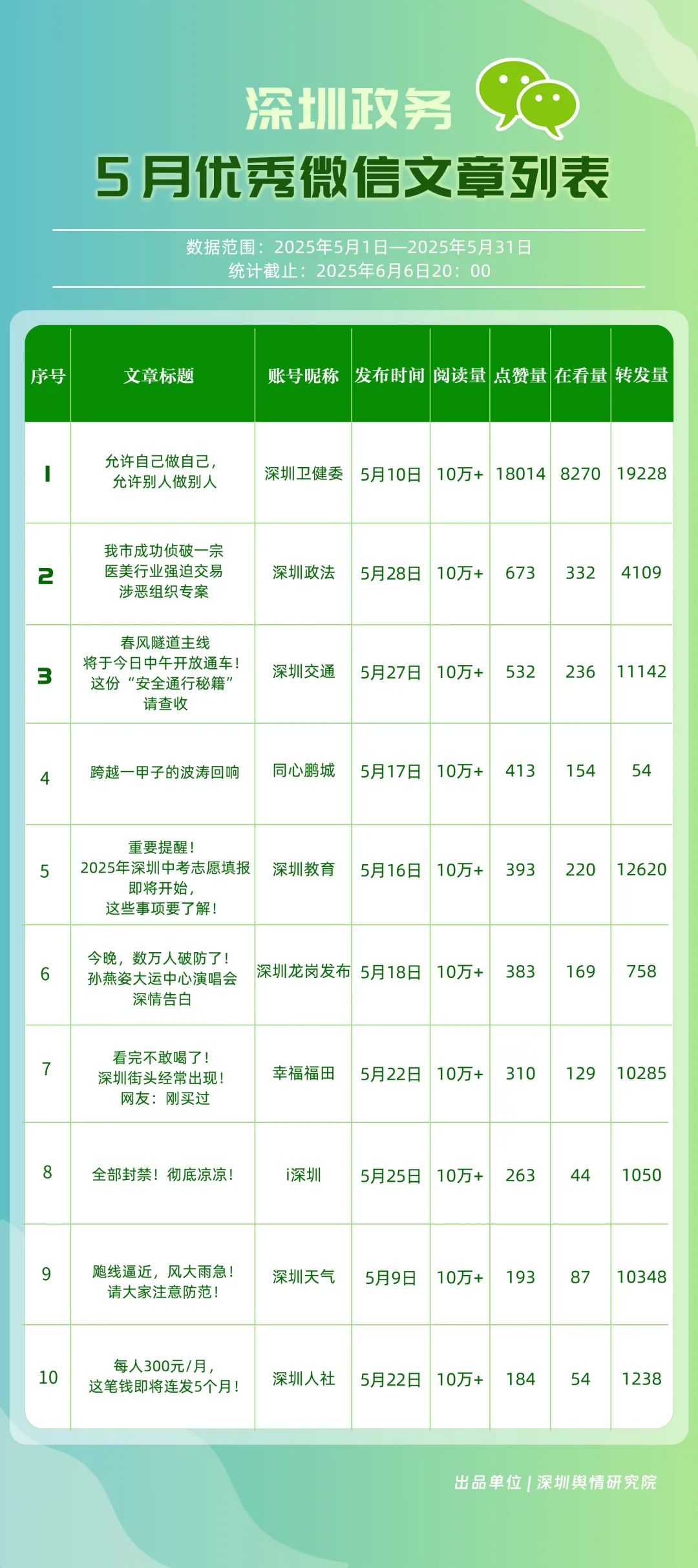 2025年5月期《深圳優(yōu)秀政務(wù)新媒體矩陣》發(fā)布,讓我們共同關(guān)注哪些矩陣以精準(zhǔn)傳播、智慧服務(wù)與創(chuàng)新實踐,在政務(wù)新媒體領(lǐng)域打造出具有示范價值的標(biāo)桿案例,以矩陣合力構(gòu)建政務(wù)傳播新生態(tài),為深圳城市網(wǎng)絡(luò)形象塑造持續(xù)注入新動能。