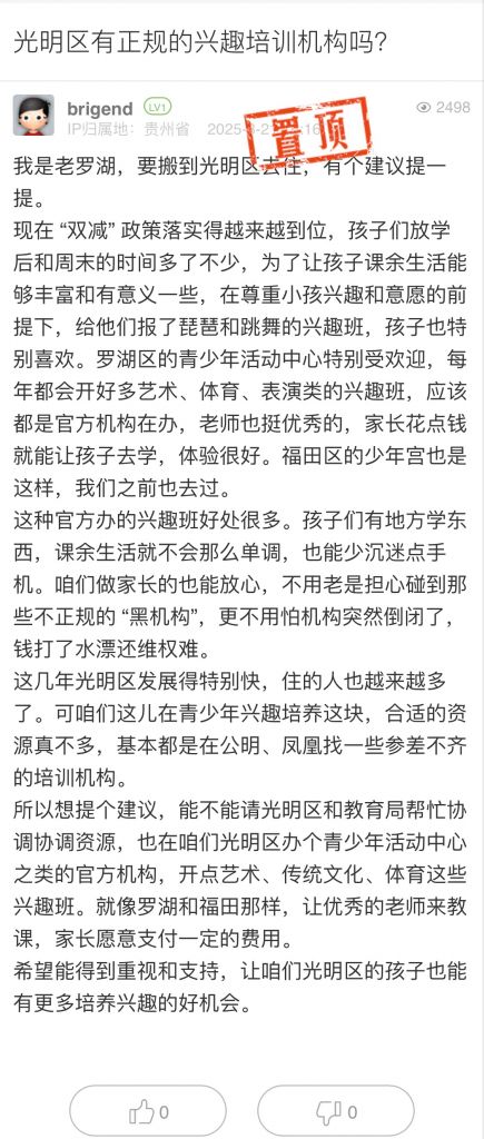 21. 帖文《光明區(qū)有正規(guī)的興趣培訓(xùn)機(jī)構(gòu)嗎?》
