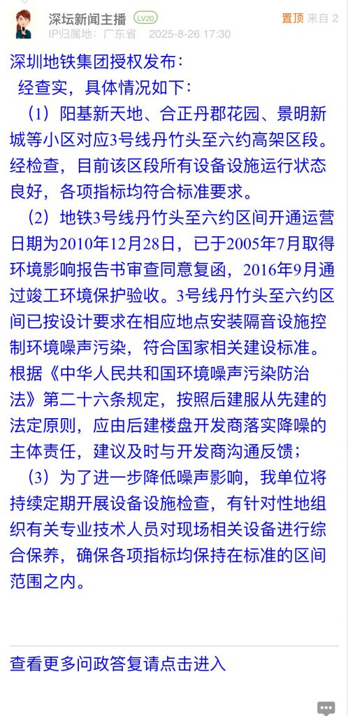 33. 帖文《關(guān)于優(yōu)化深圳地鐵3號(hào)線龍崗丹竹頭段噪音問(wèn)題的建議》