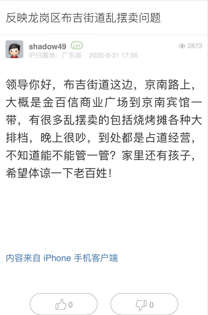 22. 帖文《反映龍崗區(qū)布吉街道亂擺賣問(wèn)題》
