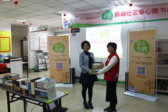 《山海經(jīng)》、《生命是什么》、《趣味物理學(xué)》······12月9日下午, 2017年深圳讀書月“爸爸書房”系列活動之愛心圖書角捐建走進(jìn)麻磡社區(qū),向麻磡社區(qū)黨群服務(wù)中心捐獻(xiàn)了近千本親子讀物并設(shè)立社區(qū)愛心圖書角?,F(xiàn)場,社區(qū)居民分享了與孩子的閱讀故事,近40個家庭到場見證捐贈儀式并交流閱讀經(jīng)驗(yàn)。[詳細(xì)]