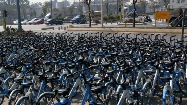 寶安福園一路密密麻麻堆積大量小藍車,回應(yīng):已完成整改