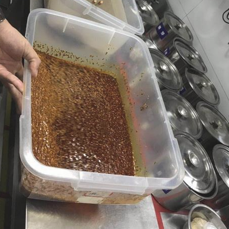 • · 自制辣椒油也發(fā)現(xiàn)未加蓋封閉放置,容易受到污染